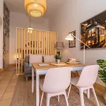 Con una terraza y una zona de estar, este establecimiento cuenta con ventanas insonorizadas, así como un sofá. Los huéspedes pueden disfrutar de servicios multimedia como TV y TV de pantalla plana con canales vía satélite, además de climatizador para su comodidad. Disfruta de la comodidad del baño de este apartamento, equipado con secador de pelo y toallas de baño. También dispone de una ducha a ras de suelo y un inodoro separado de la ducha.